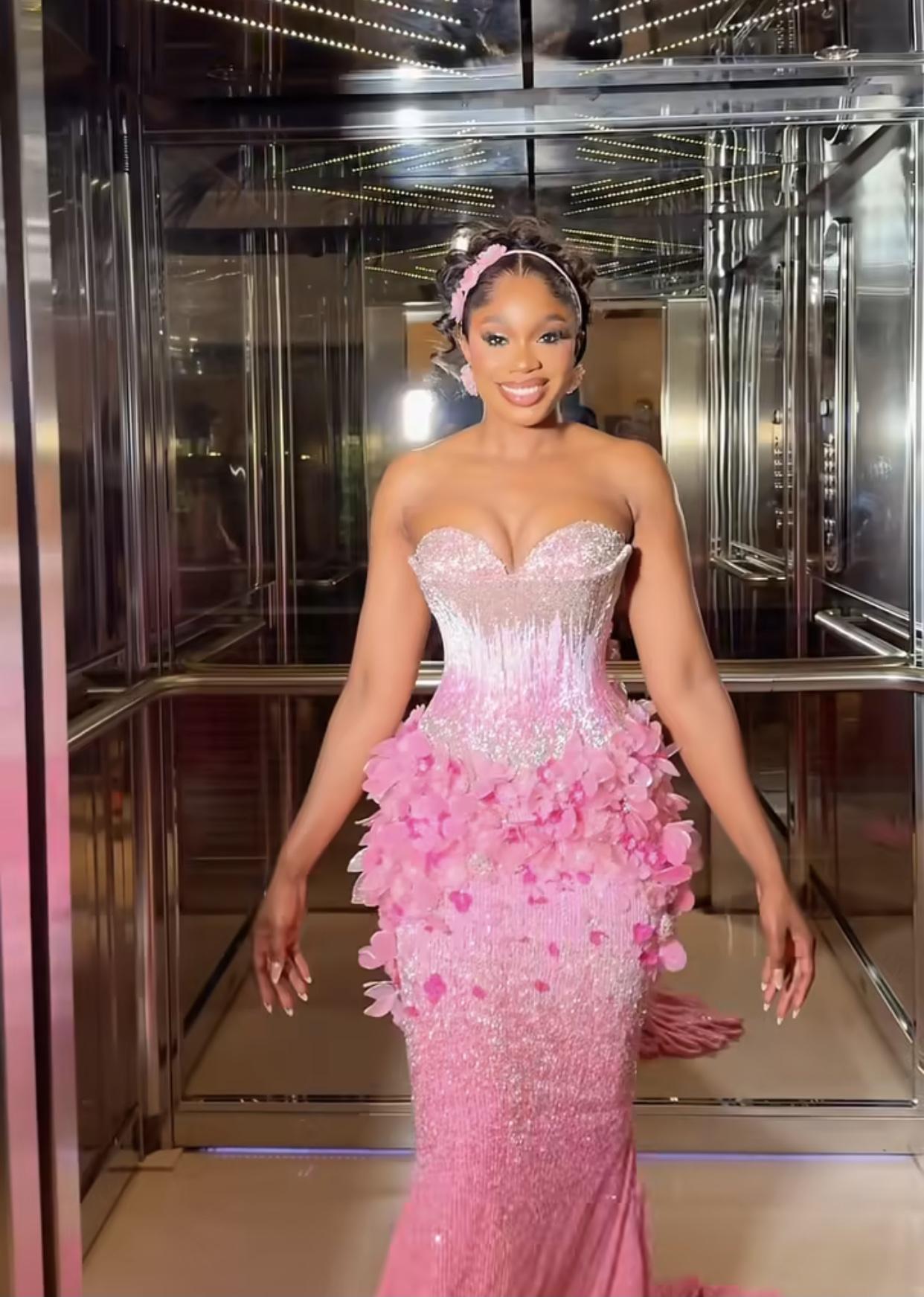 Desde el vestido rosa con incrustaciones de cristal hecho a medida hasta el vibrante minivestido rojo, cada conjunto irradiaba estilo y brillo, dejando una impresión duradera en todos los que presenciaron las festividades.